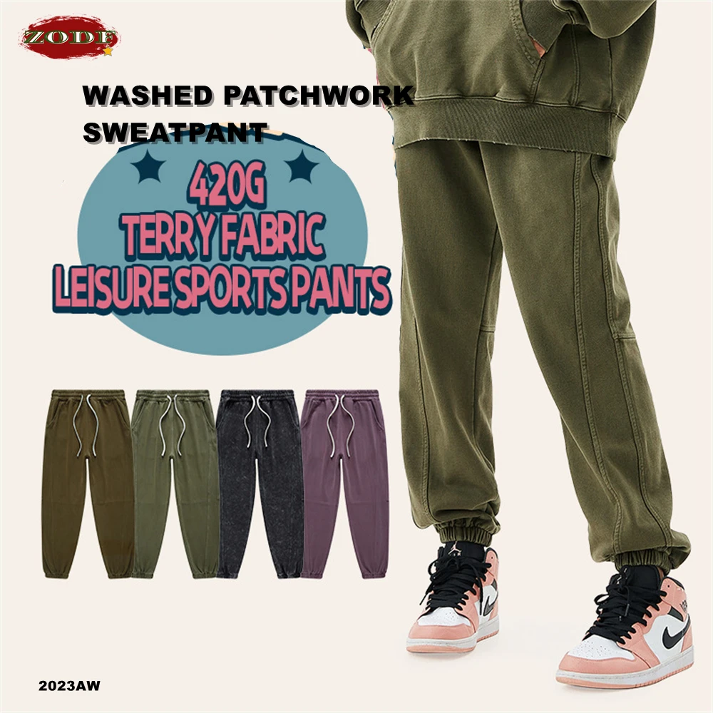 ZODF New Autumn Winter Batik Washed Cotton Sweatpants For Men Unisex Distressed Patchwork Loose 420gsm Sport Jogger Pants HY0724
